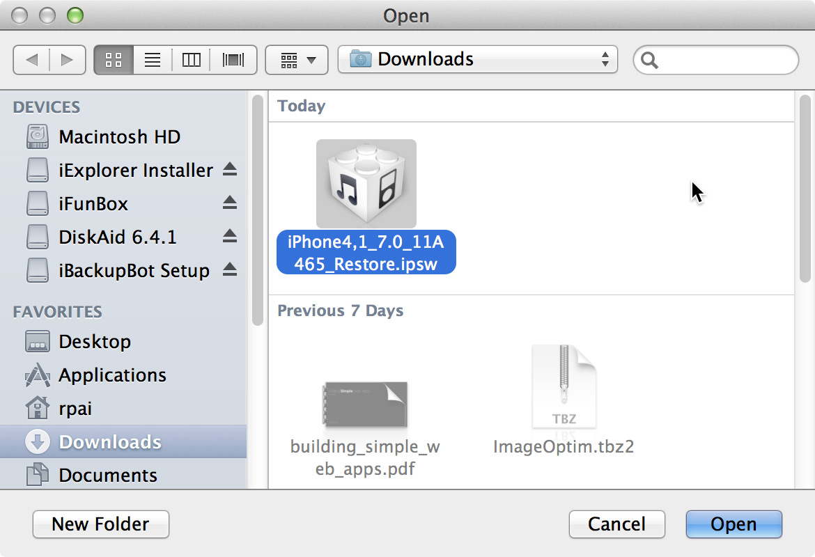 - Select the firmware you just downloaded (you can see in the screenshot that I’ve tried many ways to backup my iPhone in panic)